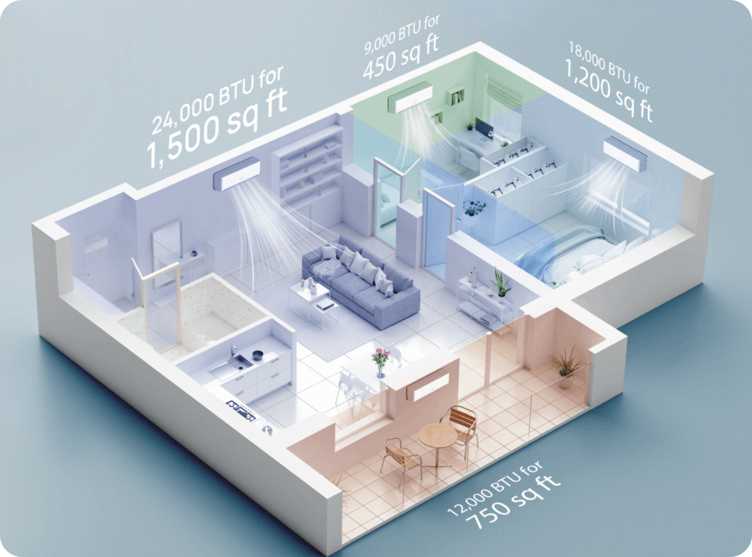 For cooling or heating multiple rooms, our multi-zone mini-split system is the perfect choice. It saves 30-40% on installation costs compared to multiple single-zone units.