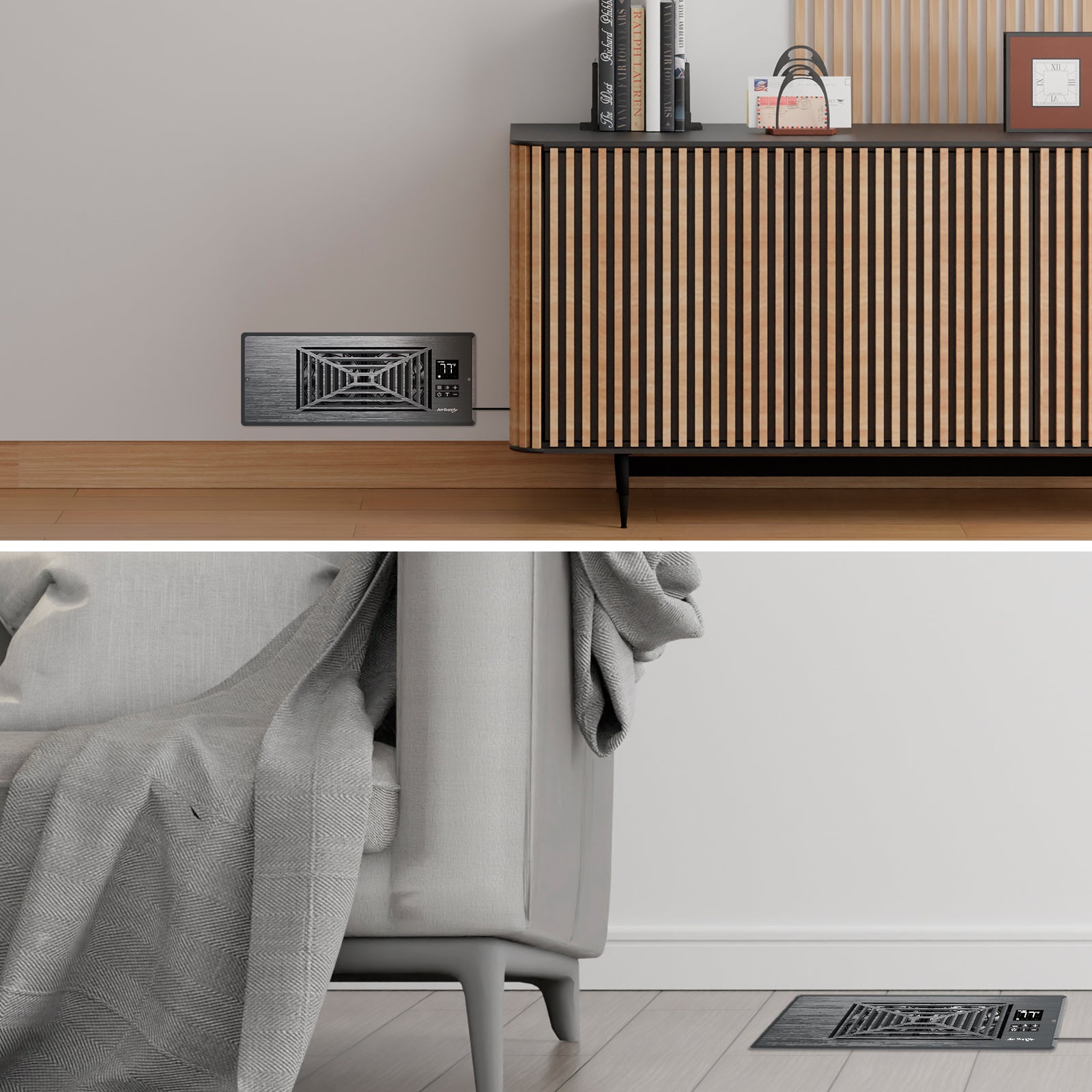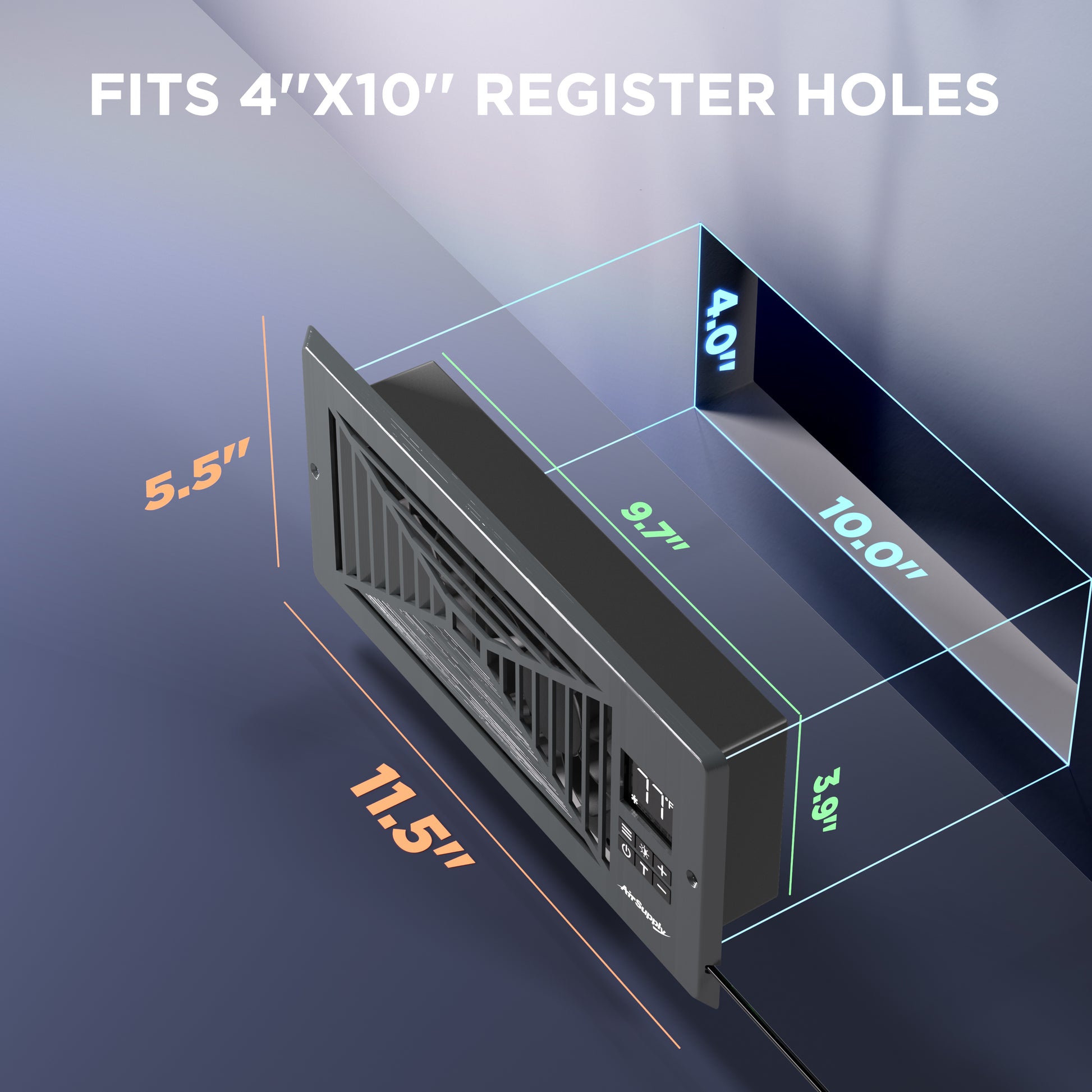 - Versatile Four-Way Vent Grille: Designed to fit 4’’x10’’ registers on either the wall or the floor. The 4-way vent grille is uniquely crafted at a 45° angle to facilitate airflow in all four directions, optimizing circulation in any room.