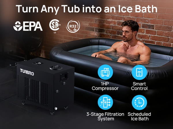 It works with both dedicated ice bath tubs and standard household/inflatable bathtubs. If your tub has 1/2"NPT internal threads, you may use the waterpipe adapter (included in the package) to establish the connection.
