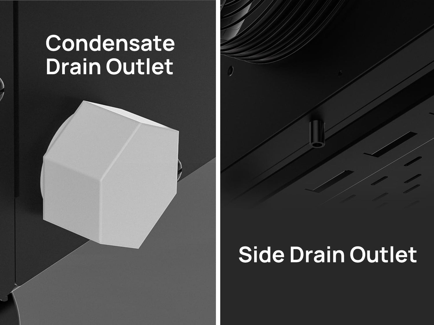 - The bottom drain releases condensation during use, which is a normal process, not a leak.