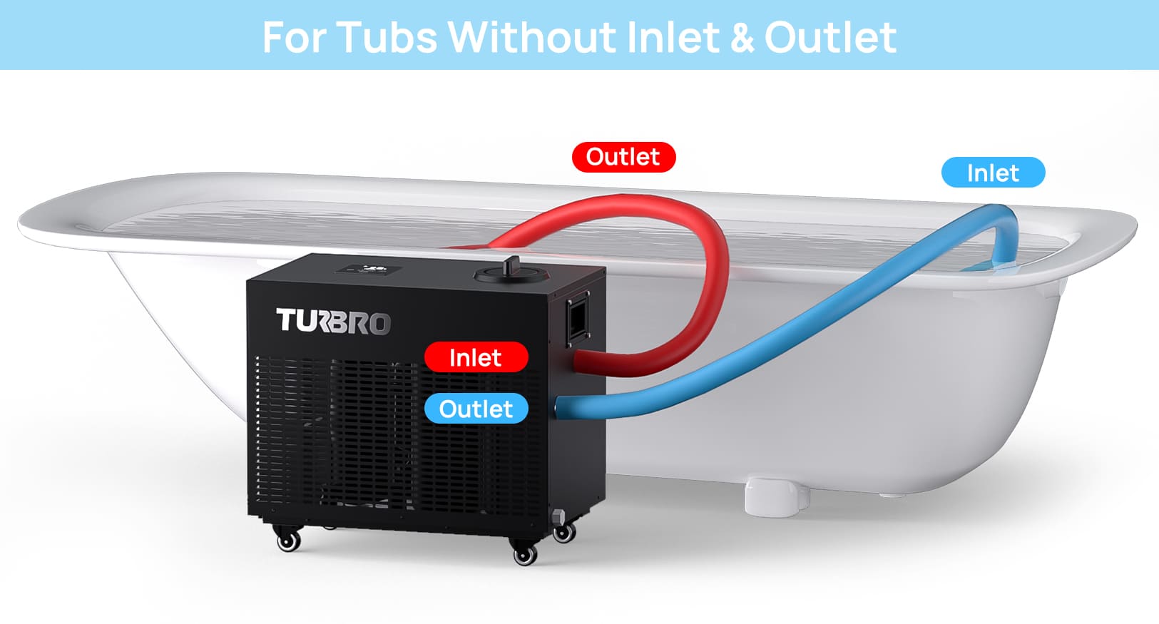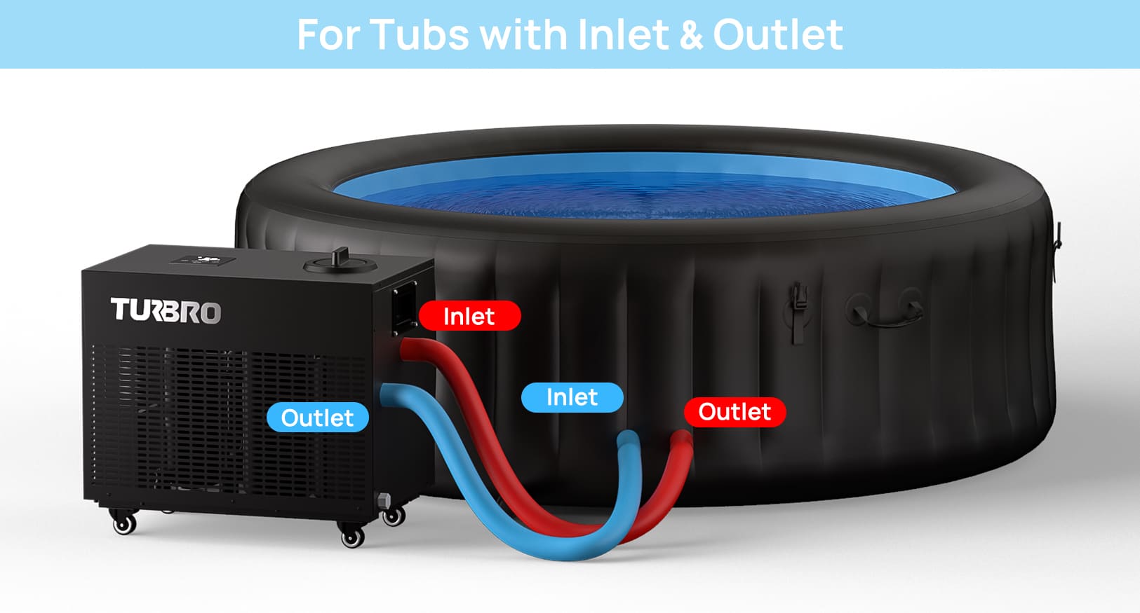 For a plunge-specific tub, simply connect the unit's outlet hose to the tub's inlet port, and the inlet hose to the tub's outlet port.