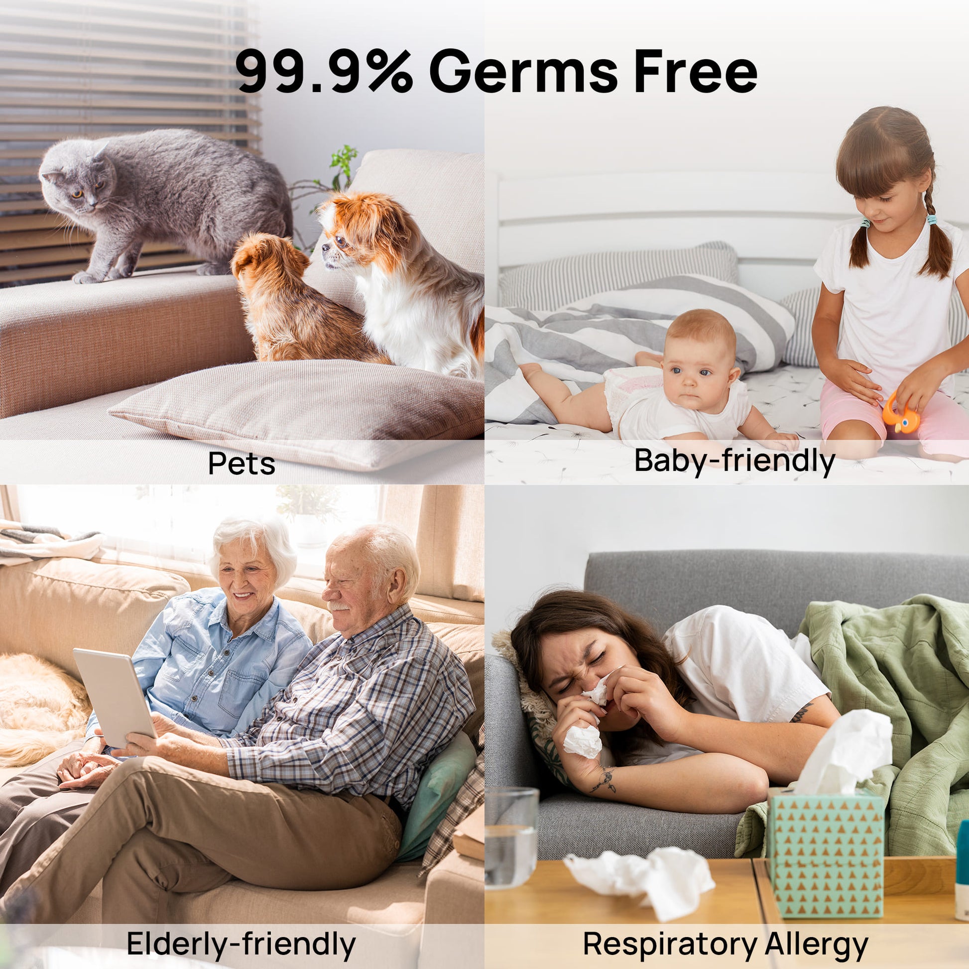 Unlike filters or plastic tanks, this humidifier uses a 304 stainless steel tank that boils water at 212°F, releasing 99.9% germ-free steam for cleaner, healthier air.