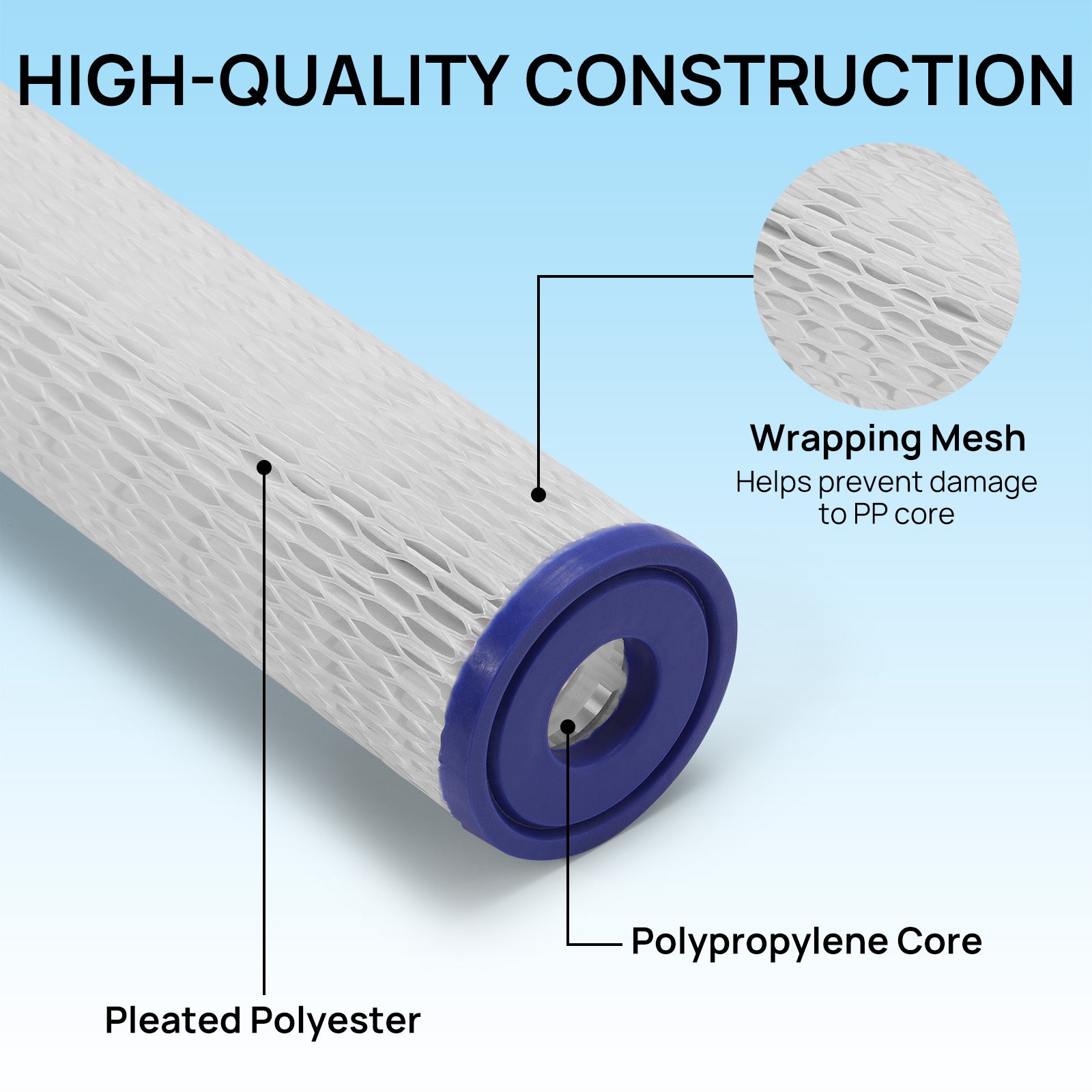 Enjoy the clarity and quality of your cold therapy experience with our specialized replacement filter cartridge, designed to fit most standard 10-inch housings found in cold plunge tubs, plunge pools, and other water systems. Its 20-micron filtration level effectively captures fine particulates like sediment and rust, contributing to visibly cleaner water. Built with a robust pleated design and a reinforcing mesh for enhanced performance, this cartridge supports easy maintenance and is suggested for replacement every four to eight weeks based on usage. Installation is quick and easy: twist the housing cap counterclockwise to open, swap the old cartridge for the new, and securely fasten the cap back in place, a process that takes just moments to complete.