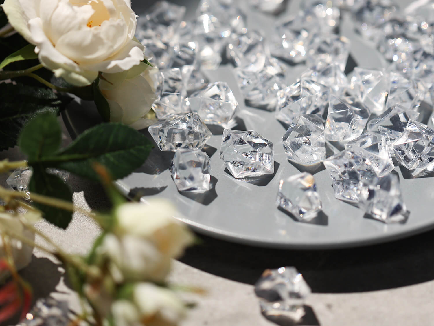 Sparkling crystals refract the beautiful flame light for a magical ambiance.